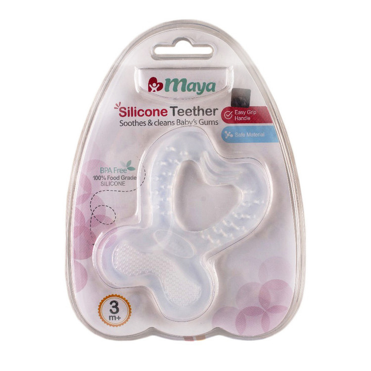 سایر توضیحات : - برای تسکین درد و خارش لثه های کودک در زمان رویش دندان ها - تهیه شده از سیلیکون نرم، خالص و بهداشتی -فاقد هرگونه ماده مضر BPA و PVC و فتالات - سیلیکون و رنگهای بکار رفته با گرید غذایی، بدون بو و مطابق با استانداردهای جهانی