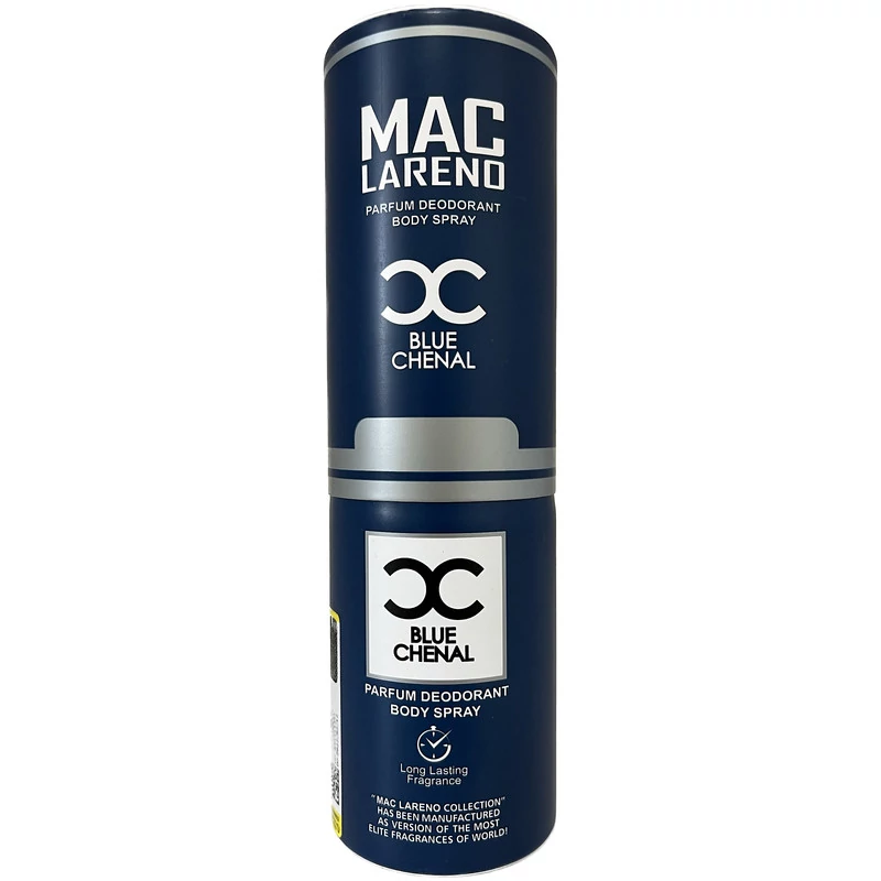 اسپری بدن مردانه مک لارنو مدل Bleu de Chanel حجم 200 میلی لیتر مشخصات فنی محصول: ** مشخصات ** حجم: 200 میلیلیتر نوع رایحه: خنک ماندگاری: 24 ساعت سایر توضیحات: اسپری ضد تعریق غیر پودری رایحه ابتدایی : گریپ فروت (Grapefruit) ، لیمو (Lemon) ، پرتقال (Orange) ، نعناع (Mint) ، جوز (Nutmeg) ، فلفل قرمز (Pink Pepper) رایحه میانی : گل یاس (Jasmine) ، زنجبیل (Ginger) ، درخت سدر (Cedar) ، درخت خس خس (Vetiver) رایحه پایانی : رزین لبدانوم (Labdanum) ، رزین کندر هندی (Olibanum) ، درخت پچولی (Patchouli) ، چوب صندل (Sandalwood)