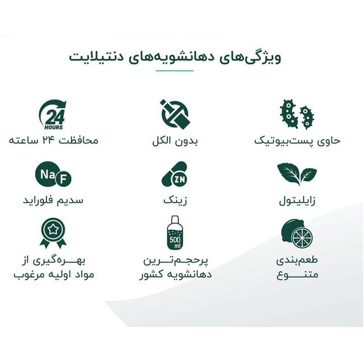 دهانشویه دنتیلایت محصولی نوآورانه و اولین دهانشویه پستبیوتیک در ایران است که با هدف حفظ تعادل میکروبیومهای دهانی طراحی شده و جایگزینی مؤثر و ایمن برای دهانشویههای الکلی سنتی به شمار میرود. فرمولاسیون این محصول با بهرهگیری از پستبیوتیکها باعث کاهش رشد باکتریهای مضر و حمایت از باکتریهای مفید دهان شده و در پیشگیری از پوسیدگی، التهاب لثه، تشکیل پلاک و بوی بد دهان نقش دارد. همچنین وجود زایلیتول به عنوان شیرینکنندهای طبیعی، به کاهش پلاک و افزایش بزاق کمک کرده و از پوسیدگی دندان جلوگیری میکند. عنصر روی (Zinc) با خاصیت آنتیباکتریال، در تقویت مینای دندان و حفظ سلامت لثه مؤثر است و سدیم فلوراید نیز با تقویت مینای دندان و ترمیم علائم اولیه پوسیدگی، محافظت کاملی از دندانها فراهم میسازد. عصاره مریمگلی (Salvia Officinalis) با خواص ضدالتهابی، آنتیاکسیدانی و ضدباکتریایی خود، در بهبود سلامت بافتهای دهانی و کاهش التهاب لثه موثر است. این دهانشویه فاقد الکل بوده و برای استفاده روزانه گزینهای مناسب و ایمن است، زیرا بدون آسیب به بافتهای دهانی، رطوبت طبیعی دهان را حفظ کرده و مانع از خشکی دهان میشود. دنتیلایت در پنج طعم متنوع و جذاب (لیمو، موهیتو، آلبالو، بلوبری و باربی) تولید شده و تجربهای دلپذیر را در کنار محافظت چندجانبه برای مصرفکننده فراهم میسازد.